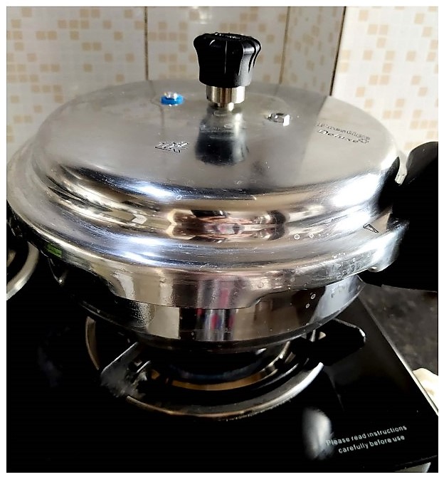 - Put on the pressure cooker lid and cover it for 1 more whistle on medium heat