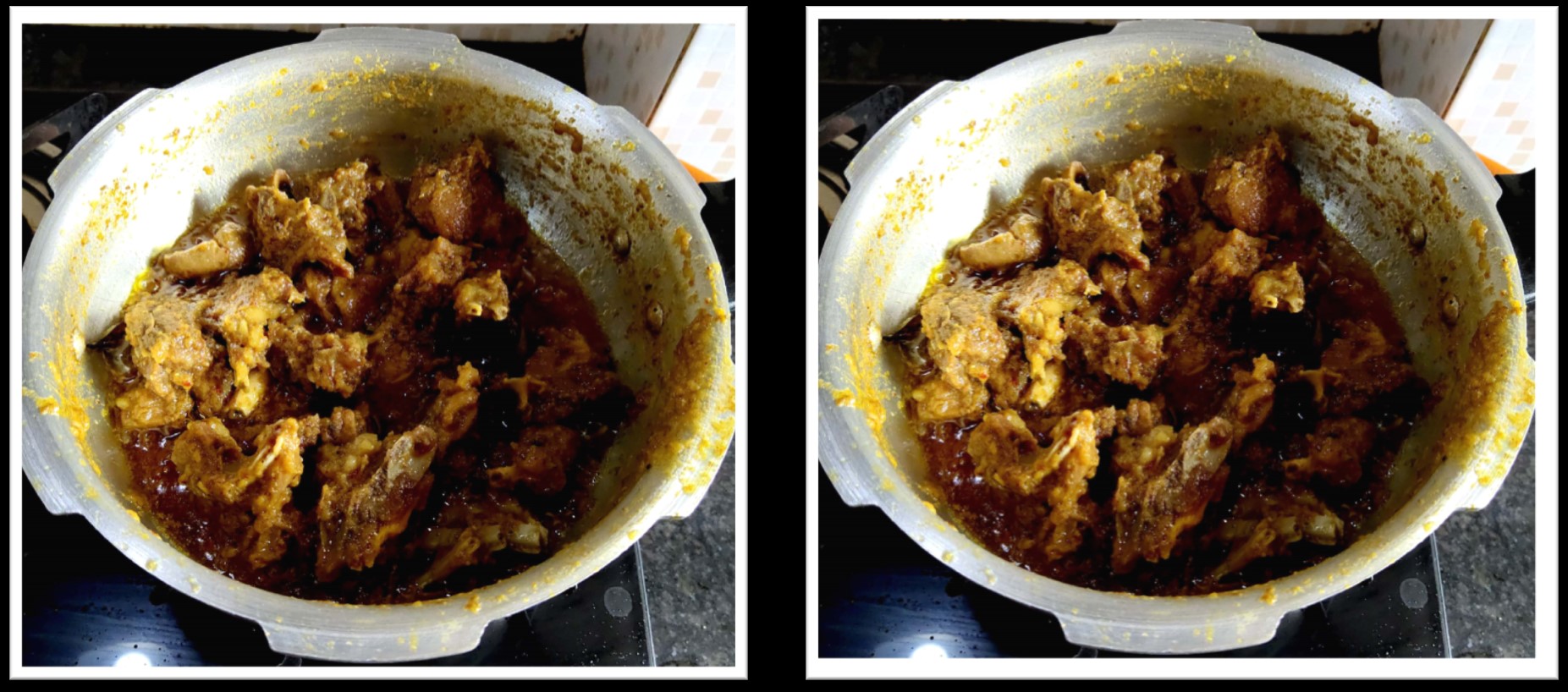 - You will notice the oil/ghee starts separating from the mutton and colour starts changing