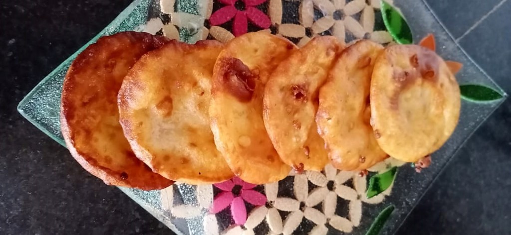 - Once both sides are golden brown take out the pua on a tissue to soak the excess oil