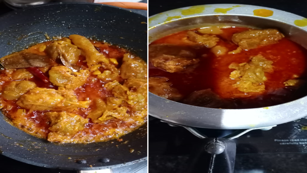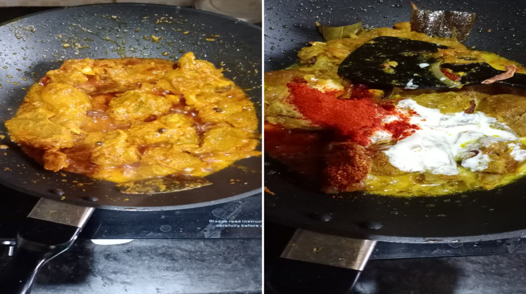 - Fry it for a while and then add beaten curd and red chili powder